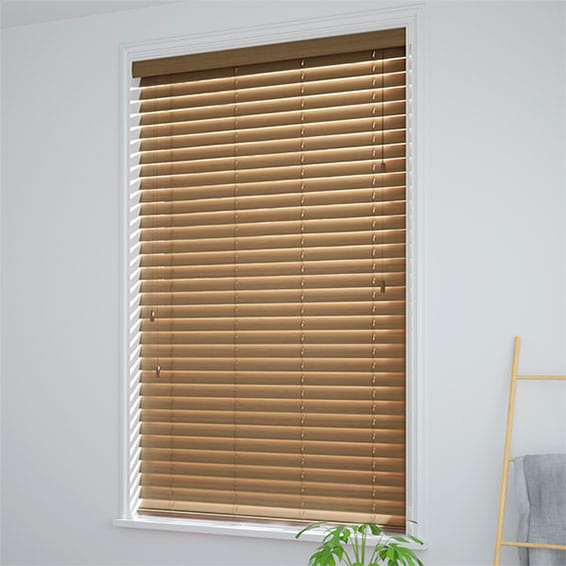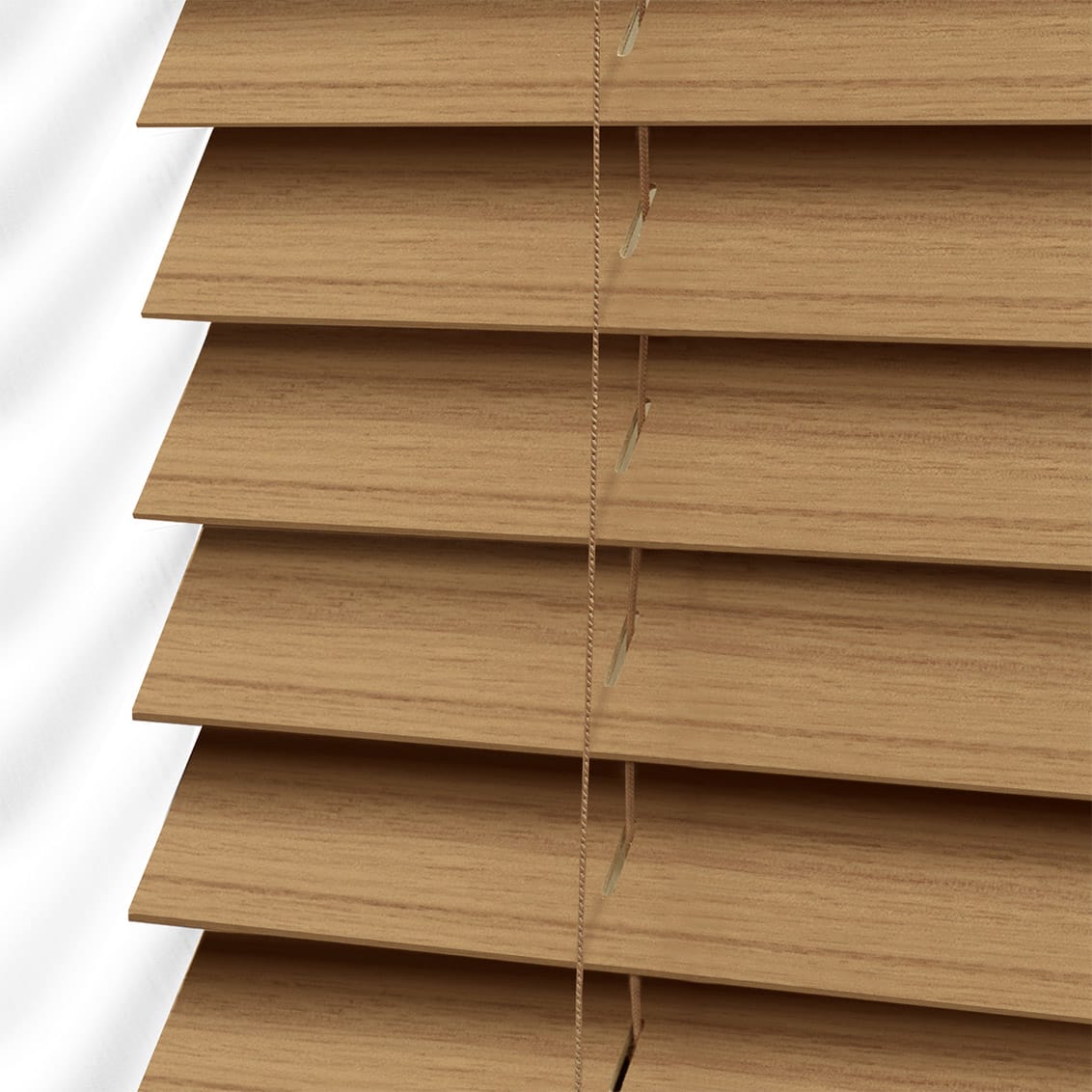 Ahşap görünümlü alüminyum jaluzi perdeler – elektrostatik toz boya ile boyanır ve isteğe göre 16 mm ve 25 mm genişliğinde alüminyum slaytlardan imal edilir.